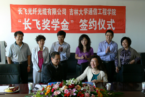 在吉大南湖校区隆重举行第三期“长飞奖学金”签约仪式,长飞董事郑慧丽和法律事务主任李璇、无码破解