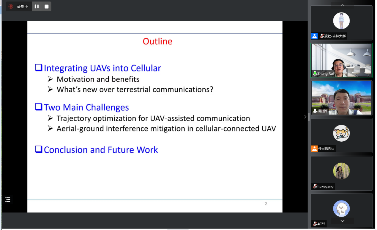 师生就“Accessing From the Sky: UAV Communications for 5G and Beyond”课题开展线上学术交流活动。交流会由胡封晔教授主持,学院师生近百人参加了本次讲座。