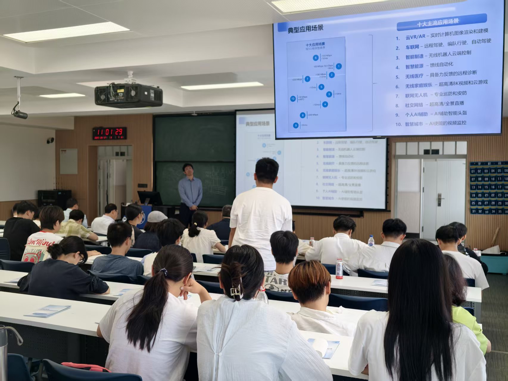 在交流环节,与会专家与同学们就5G标准化进展、网络优化和行业趋势等话题展开深入讨论,现场气氛热烈。同学们纷纷表示,通过此次宣讲不仅增强了对5G技术体系和产业前景的理解,也更加明确了未来学习与发展方向。