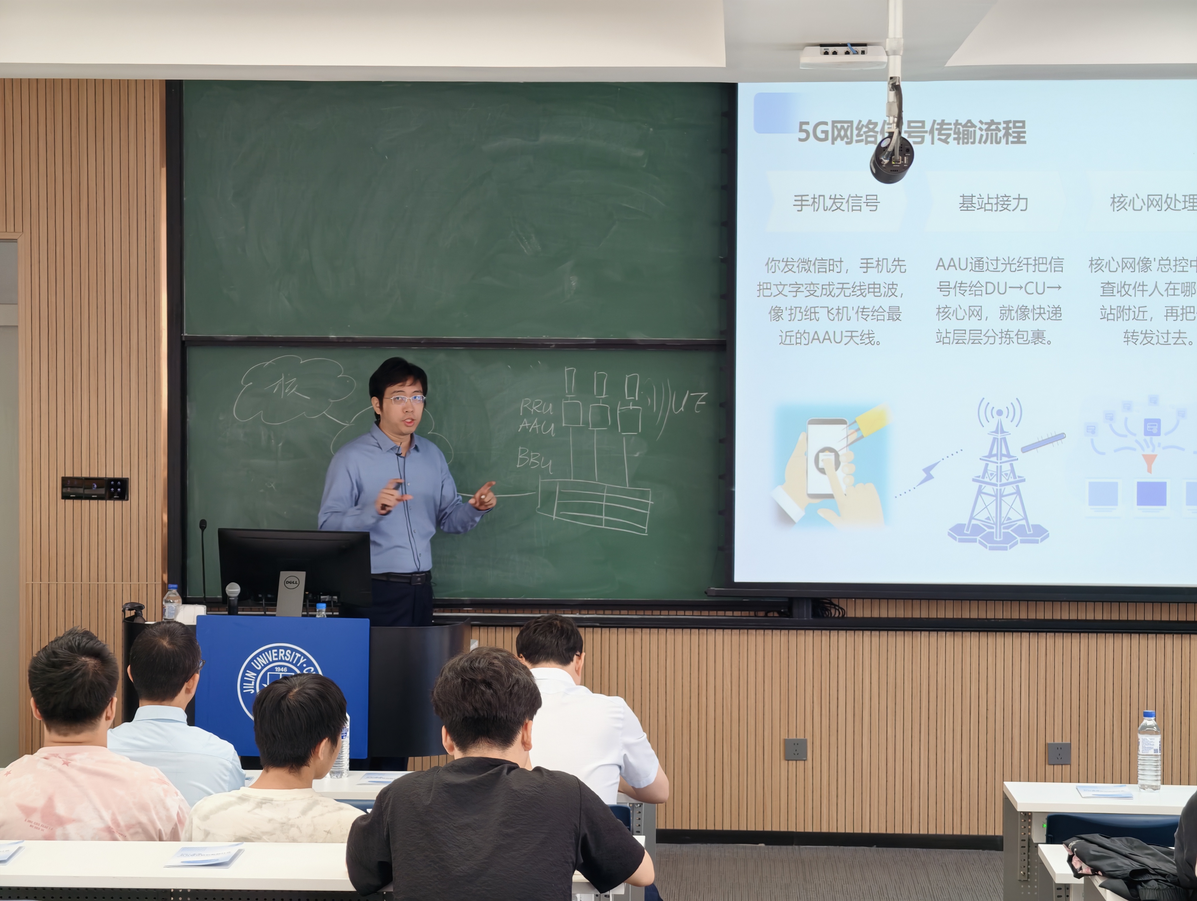 宣讲会旨在系统解读5G关键技术架构、应用场景与未来演进路径,增强学生对新一代通信技术的理解,拓展行业视野,激发科研与职业探索热情。会上,荆蔚总监围绕“从1G到5G的通信发展历程”“5G网络架构与蜂窝连接原理”“5G赋能产业数字化转型的典型场景”“5G-Advanced与6G发展展望”以及“通信行业岗位需求与项目实践”五大模块展开讲授,结合企业实际案例与研发经验,为同学们呈现一场理论与实战兼备的技术讲堂。