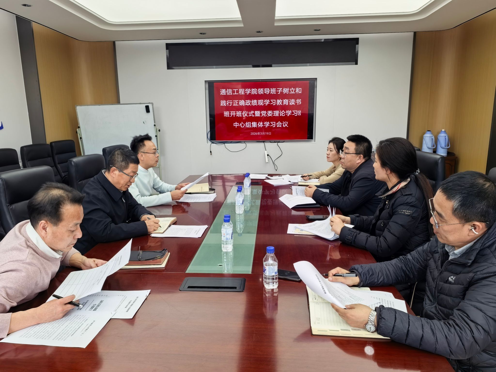 在南湖校区办公楼313会议室召开领导班子树立和践行正确政绩观学习教育读书班开班仪式暨党委理论学习中心组集体学习会议,聚焦树立和践行正确政绩观、学习贯彻全国两会精神开展集中研学与交流研讨。会议由学院党委书记董宏志主持,学院领导班子成员参加会议。